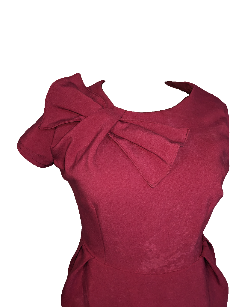 Maroon Bow Pleat Dress