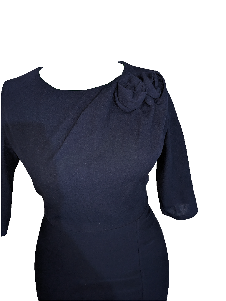 Navy Rose Petal Pencil Dress
